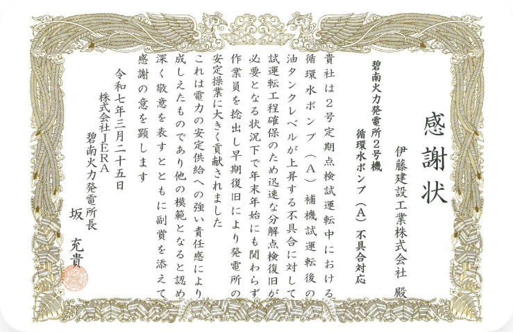 工事名称碧南火力発電所循環水ポンプ点検保修工事